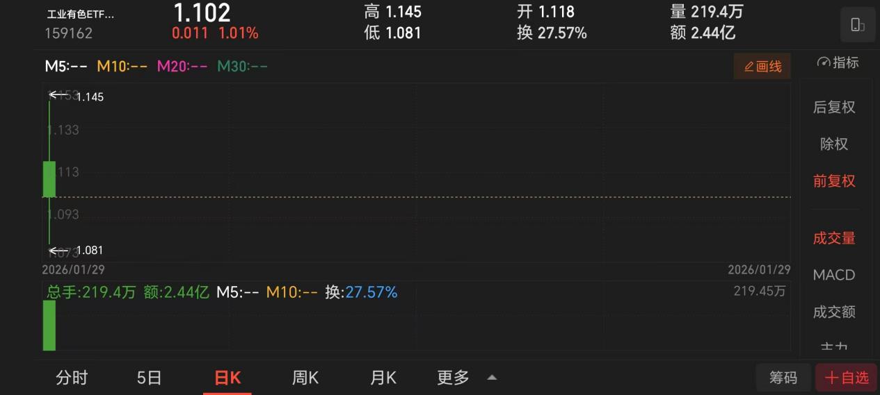 ETF折价交易本质是市场供需关系在二级市场的直接映射。当工业有色ETF鹏华(159162)的场内交易价格低于其当日实时净值时,即形成折价。这种价格偏离并非简单的“便宜”标签,而是多重市场力量交织的结果。从资金流动维度观察,机构投资者的调仓行为、套利资金的短期进出、市场情绪的波动均可能引发折价。例如,当工业金属板块出现突发利好时,套利资金可能通过买入ETF份额并赎回一篮子股票的方式获取无风险收益,这种行为在极端情况下可能扩大折价空间。