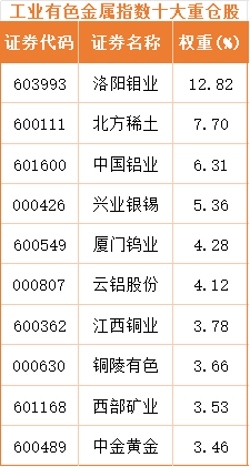 有色板块关联个股:洛阳钼业北方稀土中国铝业兴业银锡厦门钨业云铝股份江西铜业铜陵有色西部矿业中金黄金。